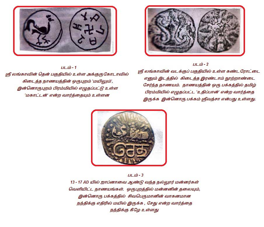 "Murukan Worship in Sri Lanka: New Archaeological Evidence" by P. Pushparatnam இந்தக் கட்டுரையின் தமிழாக்கம்: சாந்திப்பிரியா சமீபகாலத்தில் நடைபெற்ற தொல்பொருள் ஆராய்ச்சிகளில் கிடைத்து உள்ள செய்திகள் இலங்கையில் உள்ள தமிழர்களின் சரித்திரத்தை மறு பரிசீலனை செய்ய வேண்டியதின் அவசியத்தைக் காட்டுகிறது. என்னைப் பொறுத்தவரையில் அந்த ஆராய்ச்சியில் கிடைத்து உள்ள தகவல்கள் இரண்டு கோணத்தில் முக்கியத்துவம் பெறுகின்றன எனத் தெரிகின்றது. முதலாவதாக சரித்திர ஆராய்ச்சியாளர்களின் கண்டு பிடிப்புக்களை தமிழ்நாட்டில் இருந்து வந்து குடியேறிய தமிழர்களுடன் மட்டுமே பல்வேறு கோணங்களில் ஆராய்ச்சி செய்த இலங்கை அரசு, பண்டைக் காலம் முதலே அங்கு வாழ்ந்து வந்த தமிழர்களுடன் அவற்றை ஒப்பிட்டுப் பார்க்கவில்லை. இதற்குக் காரணம் பாலி புராணங்களில் இலங்கையில் வாழ்ந்து வந்த தமிழர்களைப் பற்றி குறிப்பிடப்பட்டு உள்ள செய்திகளின் காரணமாகவே அந்த நிலை உருவாகி இருந்தது. இதில் கசப்பான உண்மை என்ன என்றால், இப்படிப்பட்ட செய்திகளே உண்மை என நம்பப்பட்டு வந்து விட்டதினால் பண்டைக் காலம் முதலேயே அங்கு வாழ்ந்து வந்த இலங்கைா தமிழர்களின் உண்மை வரலாற்றை அறிந்து கொள்ள முடியாமல் போயிற்று. இலங்கைா தமிழர்களின் வரலாறு தமிழ்நாட்டின் பெருமையை பறை சாற்றுவதாகவே அமைந்து உள்ளது என்று நம்பப்பட்டதின் விளைவே அது. ஆனால் தற்போது கிடைத்து உள்ள ஆராய்ச்சிகளின் கண்டு பிடிப்புக்கள் அந்த தவறான நிலைமையை மாற்றி அமைத்து உள்ளது. இரண்டாவதாக சமீபகால ஆராய்ச்சியின் கண்டு பிடிப்புக்களின்படி இலங்கைாவின் தமிழர்களின் கலாச்சாரமும் வாழ்கை முறையும் தமிழ்நாட்டில் இருந்து அங்கு சென்று குடியேறிய தமிழர்களால் தோற்றுவிக்கப்பட்டவை என்ற கூற்று தவறு எனவும், பண்டைக் காலம் முதலே இலங்கைாவின் தமிழர்கள் தமக்கென சில பண்பாடுகளையும் பழக்க வழக்கங்களையும் கொண்டு இருந்தார்கள் என்ற உண்மையை தெரிவித்துள்ளது. ஆகவே இலங்கையில் பண்டைய காலத்தில் வாழ்ந்து வந்திருந்த தமிழர்களைப் பற்றி உண்மையான வரலாற்று செய்திகளை விளக்க வேண்டியதின் அவசியம் ஏற்பட்டு உள்ளது. ஆனால் புதிய வரலாற்று செய்திகளினால் இலங்கைாவின் பண்டைய தமிழர்கள் கொண்டு இருந்த வழிபாட்டு முறைகளில் எந்த மாற்றமும் ஏற்படப் போவது இல்லை என்பது வேறு விஷயம் . தற்போது கிடைத்துள்ள புதிய பரிமாணத் தகவல்கள் அந்த காலத்தில் உபயோகத்தில் இருந்த நாணயங்கள் மற்றும் உலோகங்களின் அடிப்படையிலேயே எழுதப்பட்டு உள்ளது. முன்னர் ஆராய்ச்சிகளை மேற்கொண்டு இருந்தவர்களின் பார்வை மற்ற விஷயங்களில் அதிகமாகவும், அங்கிருந்த நாணயங்கள் மற்றும் உலோகத்தின் மீது சற்று குறைந்தும் இருந்தது. குஷானா, சடவாஹனா போன்ற 